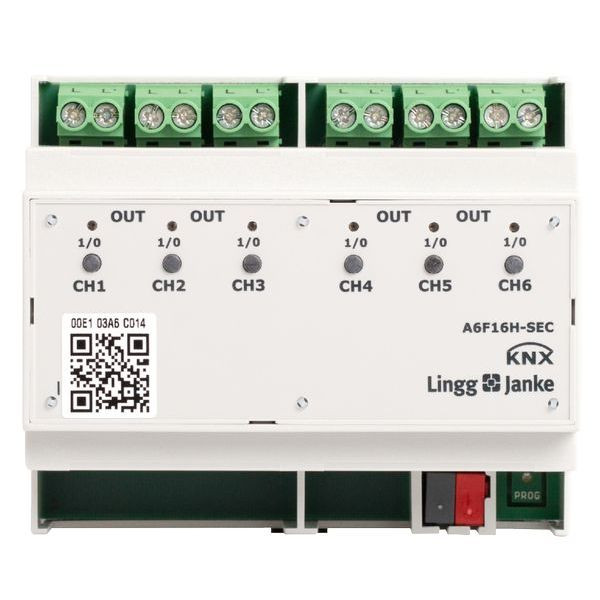 KNX eco+ Schaltaktor 6-fach Handbedienung 6 TE Schaltleistung 16A 250 VAC C-Last 200µF