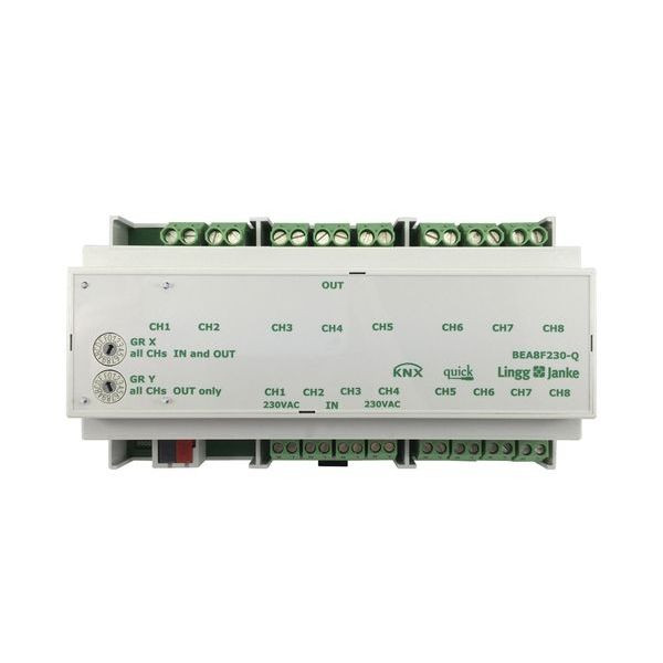 KNX quick Binär Ein-/Ausgang 8-fach Signaleingang 230V AC/DC 9 TE Schaltleistung 16A 250 VAC C-Last 200µF