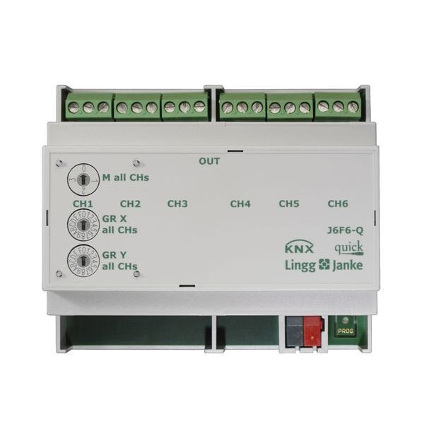 KNX quick Jalousie-/Rollladenaktor 6-fach 10A 6 TE Schaltleistung 10A 250 VAC C-Last 140µF