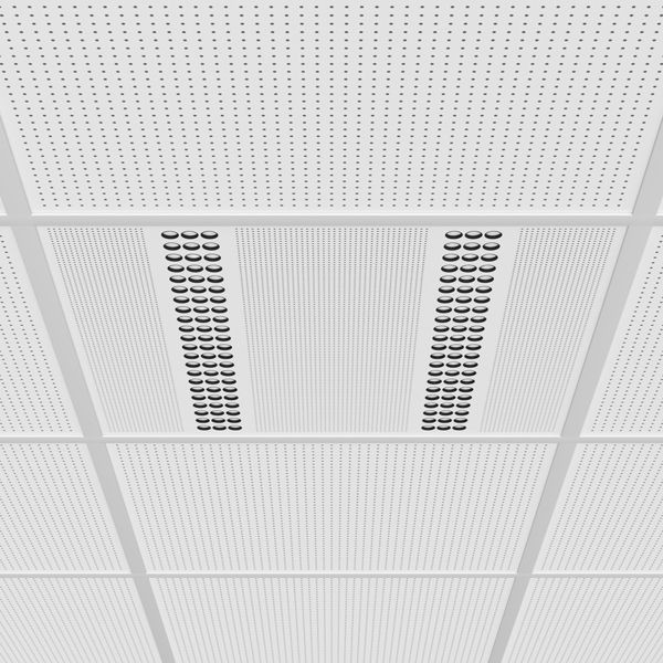 Einlegeleuchte für abgehängte Deckensysteme mit sichtbarem T-Profil Modul (600 x 600), homogenes Lichtbild, Akustik absorbierende Oberfläche (Schallabsorptionsgrad = 0,5), innovative Tubustechnologie für blendfreie Beleuchtung, energieeffiziente Linsenoptik mit Standardabstrahlwinkel von 60°, keine UV- und Wärmestrahlung, hohe Wartungsfreundlichkeit, Leuchtengehäuse aus Aluminium mit Micropoint-Optik, werkzeugloses Einlegen in Decke, konfektioniert für Netzanschluss, Betriebsgerät (LED-Konverter) inklusive (mit DALI Dimmung)Einlegeleuchte für abgehängte Deckensysteme mit sichtbarem T-Profil Modul (600 x 600), homogenes Lichtbild, Akustik absorbierende Oberfläche (Schallabsorptionsgrad = 0,5), innovative Tubustechnologie für blendfreie Beleuchtung, energieeffiziente Linsenoptik mit Standardabstrahlwinkel von 60°, keine UV- und Wärmestrahlung, hohe Wartungsfreundlichkeit, Leuchtengehäuse aus Aluminium mit Micropoint-Optik, werkzeugloses Einlegen in Decke, konfektioniert für Netzanschluss, Betriebsgerät (LED-Konverter) inklusive (mit DALI Dimmung)