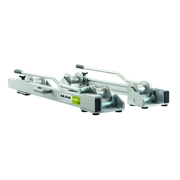 Roll..Profi Jumbo stabile Aluminium-Stahl-Konstrukion mit wartungsfreien Kugellagern, durch seine zweiteilige Bauform für den Einsatz an engen Stellen geeignet, für Trommeldruchmesser von 500 mm bis 1800 mm !! Auf Grund des teilweise sehr schlechten Zustandes der Holztrommel, weisen wir darauf hin, dass das Abrollgewicht von 700 kg nicht überschritten werden sollte !!