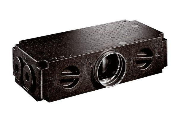 <p> - Luftverteiler mit 8 Anschlüssen für Flexrohre MF-F.</p><p> - Aus schalldämmendem Material.</p><p> - Optimale Luftverteilung dank integrierter Strömungskulissen.</p><p> - Mit 2 Revisionsöffnungen seitlich.</p><p> - Mit vorgebohrten Löchern für die Montage mit Gewindestangen.</p><p> - Hohe Lebensdauer und Umweltbeständigkeit.</p><p></p><p>Artikel:</p><p>MF-V75-8</p><p> - Luftrichtung: Be- und Entlüftung</p><p> - Volumenstrom: 300 m3/h / empfohlen</p><p> - Einbauort: Decke / Wand / Fußboden</p><p> - Material: Kunststoff EPP</p><p> - Kunststoffangaben: PVC-frei</p><p> - Gewicht: 1,85 kg</p><p> - Gewicht mit Verpackung: 1,9 kg</p><p> - Anschlussdurchmesser: 160 mm</p><p> - Anschlussdurchmesser Flexrohr: 75 mm</p><p> - Anzahl Anschlussstutzen: 8</p><p> - Breite: 710 mm</p><p> - Höhe: 185 mm</p><p> - Tiefe: 350 mm</p><p> - Breite mit Verpackung: 712 mm</p><p> - Höhe mit Verpackung: 187 mm</p><p> - Tiefe mit Verpackung: 380 mm</p>