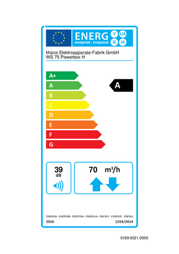 | Energieeffizienzklasse (1253/2014/EU) | A |