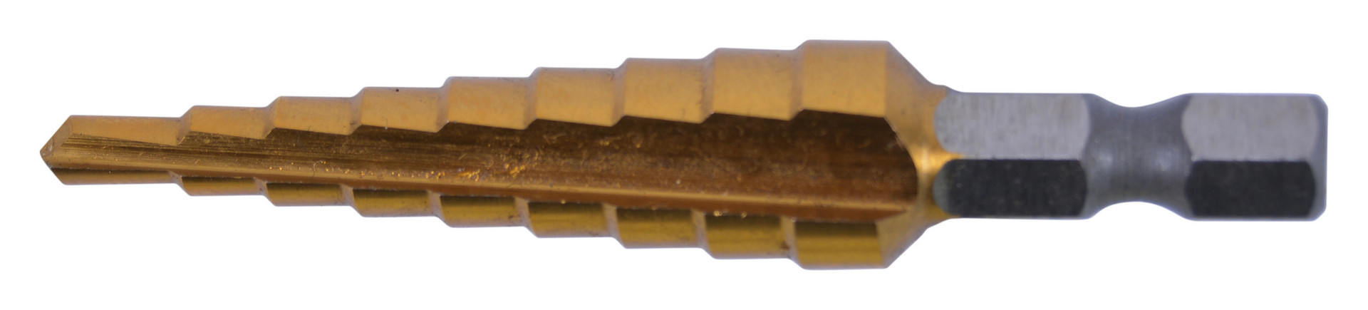 Longlife HSS Titan Stufenbohrer für Metall Ø 4-12mm • 9-stufig • 1/4" 6-kant