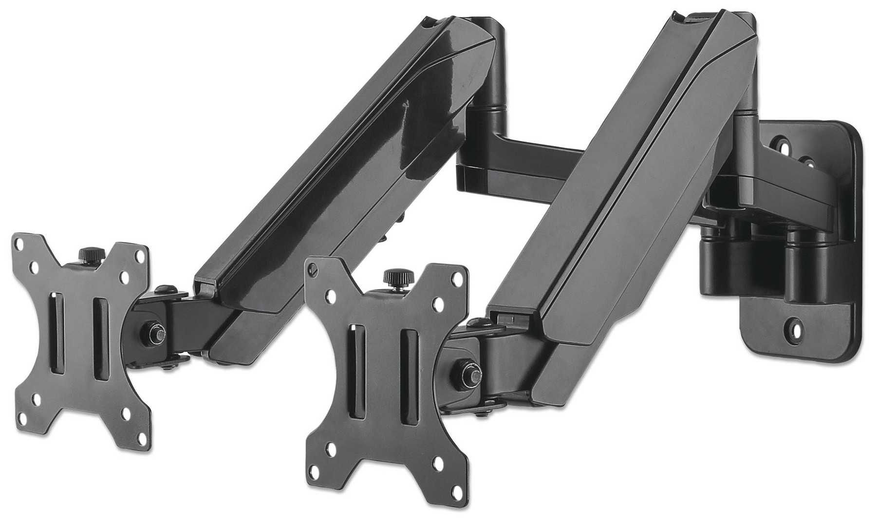 Zwei Halterungsarme mit Gasdruckfeder, Kugelgelenk und Verlängerungsarm, geeignet für zwei Monitore von 17" bis 32" bis zu 8 kg pro Arm