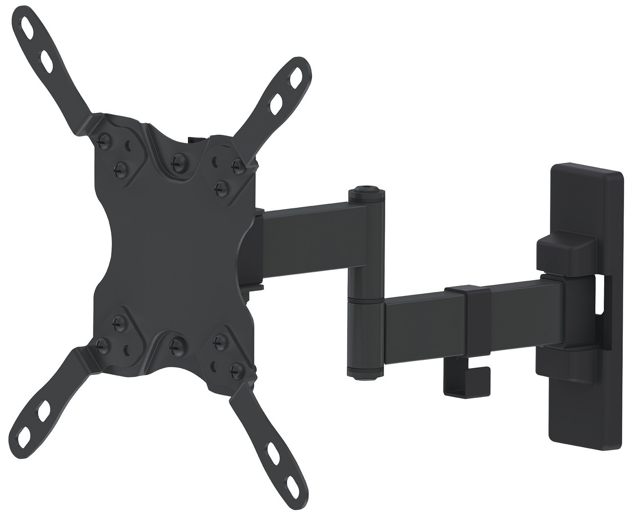 Ein doppelt schwenkbarer Arm, geeignet für Bildschirme von 13" bis 43" und bis zu 20 kg, Wandabstand 60 bis 273 mm, schwarz