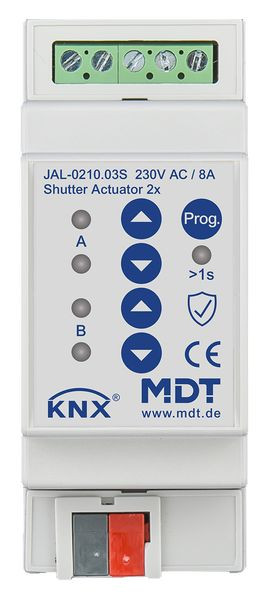 | Kurzbeschreibung | KNX Jalousieaktor 2-fach, 2TE REG, 8 A, 230 V AC, Secure |