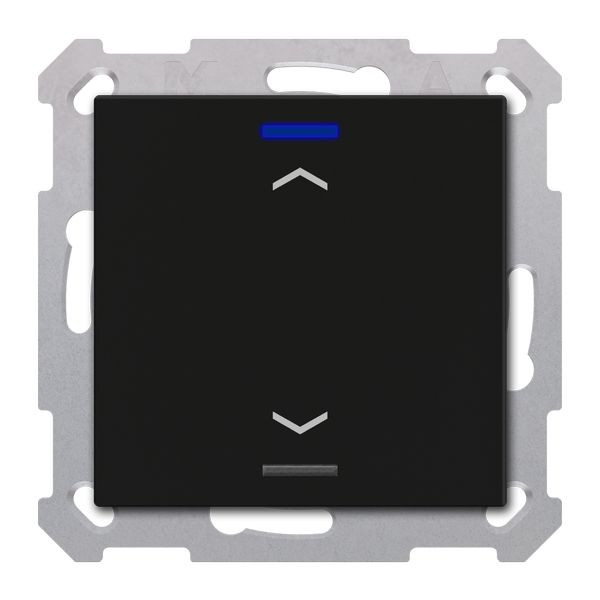 KNX Taster Light 55 1-fach, RGBW, Schwarz matt, Jalousie, Secure. Ausführung Auf/Ab Symbol mit 1 Tastenpaar / 2 Tasterflächen. KNX Data Secure, integrierter Busankoppler. Passend für 55 mm Schalterprogramme z. B. MDT Sortiment 55 oder GIRA Standard 55, E2, Event, Esprit oder BERKER S1, B3, B7 oder JUNG A 500, A PLUS, A CREATION, AS 500, A 550, A FLOW oder MERTEN 1M, M-Smart, M-Plan, M-Pure. Die Tasten sind als Tastenpaar oder Einzeltasten frei einstellbar. Ein- und Zweitasterbetrieb für Schalten, Dimmen, Jalousie, Werte. Intelligentes Ein-Tasten-Dimmen. Erweiterte Funktion "Werte senden". Umschalten von bis zu vier Werten oder Szenen. Kurzer/Langer Tastendruck mit 2 Objekten. Innovative Gruppensteuerung mit langem/extra langem Tastendruck. Mehrfach-Tippfunktion sendet bis zu 4 Werte auf gleiche oder verschiedene Objekte. Zwei RGBW Status-LEDs pro Tastenpaar. LED Helligkeit über Tag/Nacht- oder Helligkeit-Objekt steuerbar. 4 Logikblöcke. Einbau in Schalterdose mit mitgeliefertem Tragring. 3 Jahre Produktgarantie.