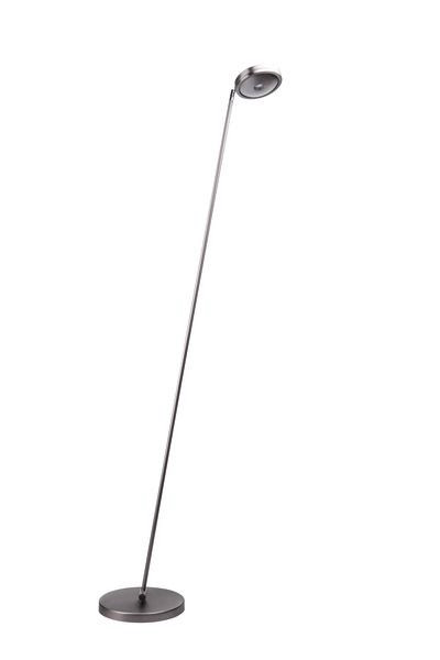 OTTICA STANDO Titan ist eine grazile, dimmbare Design-Stehleuchte fü�r Wohn- und Arbeitszimmer. Der flache Leuchtenkopf ist dreh- und schwenkbar. Die Neigung des Leuchtenhals ist einstellbar. Die einzigartige GX53 BRIGHTEYE LED sorgt fü�r einen 90ø Lichtkegel und vermeidet störendes Streulicht. Die Leuchte wird mit dem Schnurschiebedimmer eingeschaltet und gedimmt (9 W/620 lm, dimmbar 100 bis 10%). Die Lichtquelle ist mit einem Handgriff wechselbar. Dadurch ist OTTICA wie alle Modelle aus der Ambiente-Serie von MEGATRON besonders servicefreundlich und nachhaltig nutzbar.