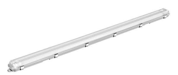 Professionelle, 1,5m lange IP65-Feuchtraumleuchte für Standartanwendungen in Handel und Gewerbe sowie auf Baustellen. Robuste Profiqualität mit wechselbaren LED-T8-Röhren. 3-Polige Durchgangsverdrahtung mit durchgehendem Schutzleiter.