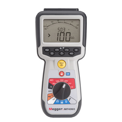 | Kurzbeschreibung | MIT430/2-LG1 (EN FR DE NL) Insulation & Continuity Tester 50/100/250/500/1000V + 600 V CAT IV + PI & DAR, variable voltage, storage/recall |