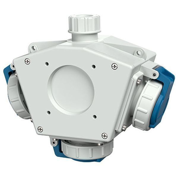 MENNEKES DELTA-BOX, blau/grau SCHUKO-3-FACH-Kupplung 16A2P+E DWD (10808/1932) Leitungseinführung: 1X M 32X1,5 mit Verschraubung WAGO Verbindungsklemme 5-Leiter anschlussfertig verdrahtet mit innenliegender Zugentlastungsschelle