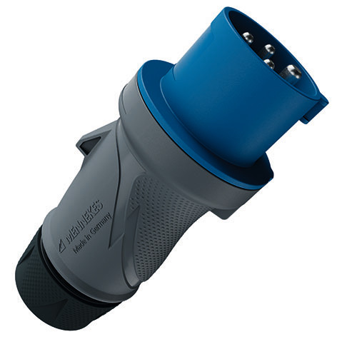 CEE Stecker PowerTOP Xtra R 32A 4P 9h 230V IP54 ergonomisches Gehaeuse gummierte Verschraubung Schraubtechnik hochwaermebestaendiger Kontakttraeger vernickelte Kontakte