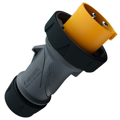 CEE Stecker PowerTOP Xtra R 32A 3p 4h 110V IP67/IP69 ergonomisches Gehaeuse gummierte Verschraubung Schraubanschluss vernickelter Kontakt