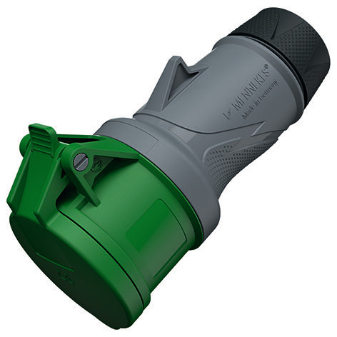 CEE Kupplung PowerTOP Xtra R 32A 3P 10h 50-500V IP54 X-Contact ergonomisches Gehaeuse gummierte Verschraubung Schraubtechnik hochwaermebestaendiger Kontakttraeger vernickelte Kontakte