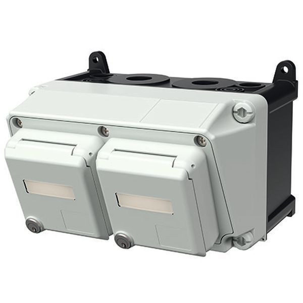 MENNEKES Netzwerkgehaeuse AMAXX AMAPLAST-Gehaeuse 130 x 225mm Schutzart IP 44 Unterteil schwarz Oberteil elektrograu (RAL 7035) mit 2 Datendosen Cepex (Bestell-Nr.4322G) fuer je 1 Doppelanschlussdose RJ 45 Kategorie 3-6; Fabrikat Rutenbeck Typ (UP OS) oder Kanalvariante Kategorie 5 und 6 (Typ UAE-Cat. K Up OS) gleiche Schliessung Lieferumfang: ohne Datenmodule Leitungseinfuehrungen: 2x M 25 oben (verschlossen) 2x M 25 unten (verschlossen) je 2x M 20 oben und unten (verschlossen) Unterteil mit Eindrehmuttern zur Aufnahme von Bodenmontageplatte 1x Tragschiene mit Tragschienenrasten 1x Kabelverschraubungsset beiliegend (1x Verschraubung M25, 1 Mehrfachbeschichtung mit 3 oeffnungen fuer einen Kabeldurchmesser von 5-7mm inkl. passender Blindstopfen, 1 Verschlussformdichtung blind fuer kundenseitige Lochung) Bei vorliegender Bestueckung kann die Montage des Netzwerkgehaeuses freistehend sowie neben oder unterhalb einer bestehenden AMAXX- Kombination erfolgen.