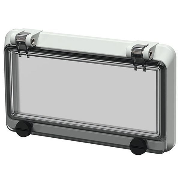 Scharnierfenster fuer 8 TE ohne Beruehrungsschutz elektrograu, Rauchglas