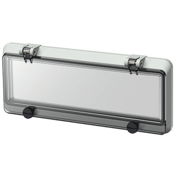 Scharnierfenster fuer 12 TE ohne Beruehrungsschutz elektrograu, Rauchglas