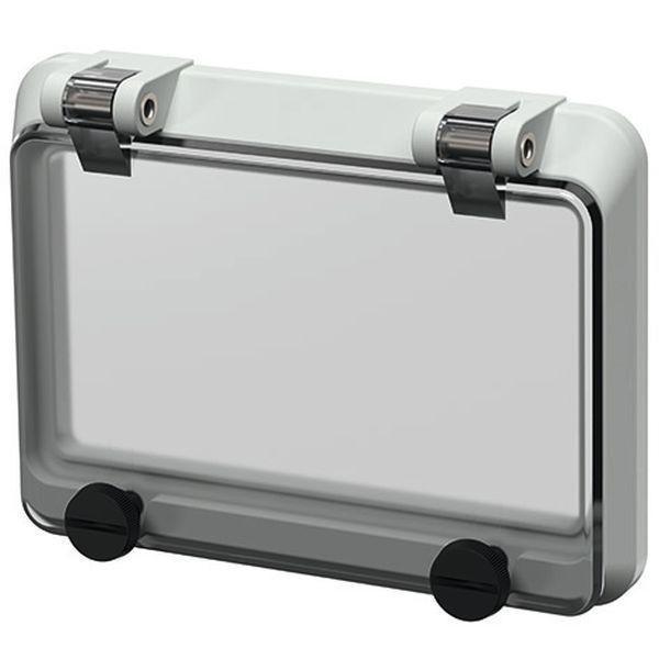 Scharnierfenster fuer 6 TE ohne Beruehrungsschutz elektrograu, Rauchglas