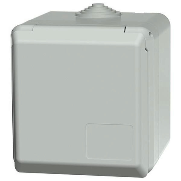 16A2P+E 230V SCHUKO-Wanddose Cepex IP 44 lichtgrau RAL 7035 mit Schraubklemme Leitungseinfuehrung oben