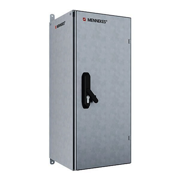 MENNEKES Aufputz-Verteiler als Wandgerätestecker Schutzart IP 44 Gehäuse: 1 Edelstahlgehäuse, 1.4301 geschliffen, K240 700x300x310 mm (HxBxT) Bestückung/Anschlussmöglichkeit: 1 x CEE Anbaugerätestecker 63A 5p 1h >50V (IP 67) Klemme für 1 Leitung bis 5 x 50mm² (flexibel max. 35 mm²) Leitungseinführung: 2 x Leitungseinführungstülle unten,geeignet für Leitungsdurchmesser von 13-43mm 1 x Messing - Verschlussschraube M20 unten Fronttür mit Schwenkhebelgriff und Profilhalbzylinder bei gesteckter Kupplung verschliessbar; 1 Erdungsschraube M6 innen 1 Set Wandbef.laschen (90432000) Gesamtgewicht: ca. 30 KG