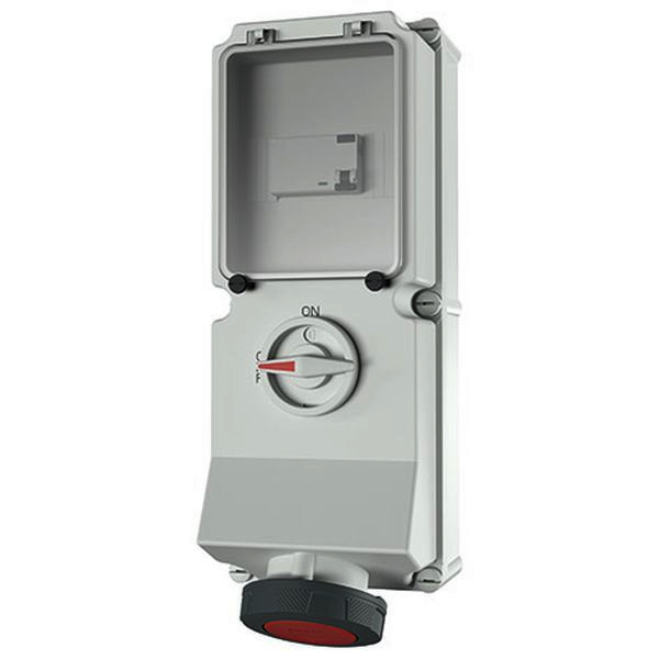 63A4P 6H400V Wanddose DUO IP 67 mit Rahmenklemme und X-CONTACT FI-Schalter 63A4P IFN 0,03A