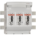 Die Produktpalette der MULTIBLOC 2.RST8 umfasst NH-Sicherungs-Lasttrennschalter für 400 A. Die Produkte sind in 3-poliger Ausführung verfügbar und geeignet für 40 und 60mm Sammelschienen-Systeme. MULTIBLOC NH-Sicherungs-Lasttrennschalter unterschiedlicher Baugrößen können mit passenden Abdeckungen auf eine Ebene gebracht werden, wodurch eine gemeinsame, flache Zentralabdeckung möglich ist. MULTIBLOC Größe 2 sind für NH-Sicherungs-Einsätze nach IEC/EN 60269-2, VDE 0636-2, Größe 2, 400A entwickelt. Das System ist ein Modulsystem, in dem die verschiedenen Produkte optimal kombiniert werden können. MULTIBLOC ermöglichen dem Anwender rasche und einfache Installationsmöglichkeit sowie hohe Sicherheit bei der Installation und Wartung. Dieser NH-Sicherungs-Lasttrennschalter ist mit 3 Schellenklemmen 120 bis 240mm² ausgestattet.