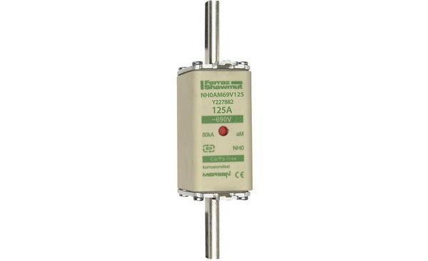 | Kurzbeschreibung | Sicherungseinsatz NH aM Gr.0 AC690V 125A mit spannungsführenden Grifflaschen sfü und Doppelkennmelder |
