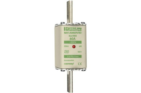 | Kurzbeschreibung | Sicherungseinsatz NH aM Gr.1 AC690V 80A mit spannungsführenden Grifflaschen sfü und Doppelkennmelder |