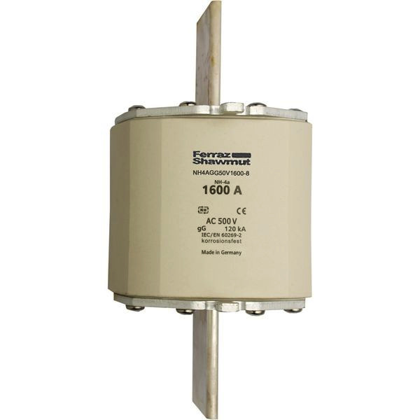 | Kurzbeschreibung | Sicherungseinsatz NH gG Gr.4a AC500V DC250V 1600A mit spannungsführenden Grifflaschen sfü und Stirnkennmelder |