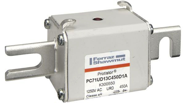 Mersen Protistor Sicherungseinsätze 1250/1300V für den Halbleiterschutz berücksichtigen ein breites Maß an Flexibilität bei der Anwendung zum Schutz von modernen Stromrichtergeräten. Es handelt sich um eine superflinke Reihe, die in ihrer Gesamtheit befähigt ist, Leistungshalbleiter wie z.B. Dioden, Thyristoren, MOSFET und IGBT Bauelemente zu schützen. Protistor Sicherungseinsätze in verschiedenen Baugrößen und zahlreichen Nennströmen ermöglichen eine weitestgehende Geräteanpassung. Die Sicherungen enthalten in Sand fest eingebettete Schmelzleiter, um sehr gute Gesamtabschaltintegrale (I2t) und hohe Schaltvermögen zu gewährleisten. Die Kontaktoberflächen sind versilbert und alle Bauteile nichtmagnetisch. Es gibt bei allen Sicherungen dieser Reihe einen Funktionsmelder, der neben seiner visuellen Anzeigefunktion auch dazu benutzt werden kann, mittels eines zusätzlichen Mikroschalters die Sicherungsfunktion fern zu melden. Die Sicherungen verfügen über ein DIN110 Kontaktmesser.