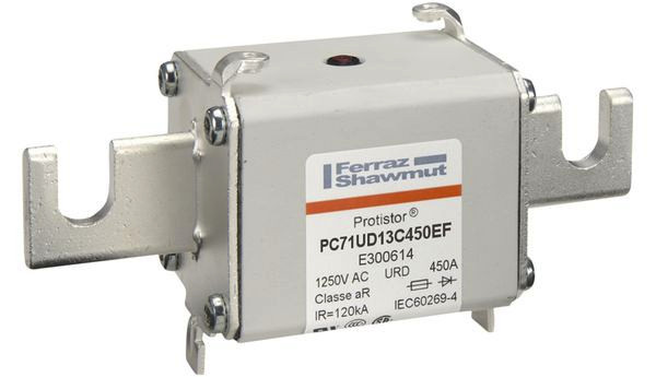 Mersen Protistor Sicherungseinsätze 1250/1300V für den Halbleiterschutz berücksichtigen ein breites Maß an Flexibilität bei der Anwendung zum Schutz von modernen Stromrichtergeräten. Es handelt sich um eine superflinke Reihe, die in ihrer Gesamtheit befähigt ist, Leistungshalbleiter wie z.B. Dioden, Thyristoren, MOSFET und IGBT Bauelemente zu schützen. Protistor Sicherungseinsätze in verschiedenen Baugrößen und zahlreichen Nennströmen ermöglichen eine weitestgehende Geräteanpassung. Die Sicherungen enthalten in Sand fest eingebettete Schmelzleiter, um sehr gute Gesamtabschaltintegrale (I2t) und hohe Schaltvermögen zu gewährleisten. Die Kontaktoberflächen sind versilbert und alle Bauteile nichtmagnetisch. Es gibt bei allen Sicherungen dieser Reihe einen Funktionsmelder, der neben seiner visuellen Anzeigefunktion auch dazu benutzt werden kann, mittels eines zusätzlichen Mikroschalters die Sicherungsfunktion fern zu melden. Die Sicherungen verfügen über ein EF Kontaktmesser.