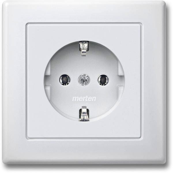 | Kurzbeschreibung | SCHUKO-Steckdose mit voller Abdeckplatte, Steckklemmen, polarweiß, M-SMART |