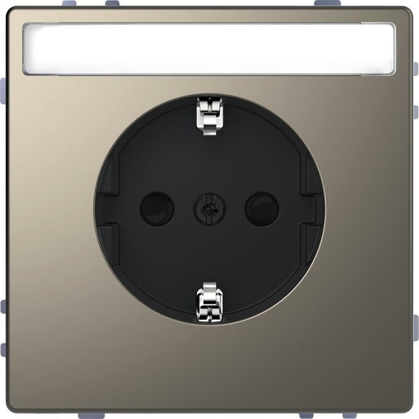 | Kurzbeschreibung | SCHUKO-Steckdose mit Schriftfeld, Berührungsschutz, Steckklemmen, Nickelmetallic, System Design |