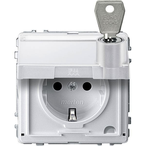 | Kurzbeschreibung | SCHUKO-Steckdose, Klappdeckel, Schriftfeld, abschließbar, versch. Schließungen, BRS, Steckklemmen, polarweiß, AQUADESIGN |