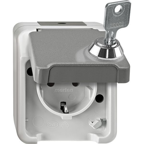 | Kurzbeschreibung | SCHUKO-Steckdose mit Berührungsschutz, abschließbar mit gleichen Schließungen, Schloss-Nr. 200, lichtgrau, AQUASTAR |
