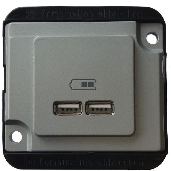 USB 2.0 Spannungsversorgung mit zwei Ausgängen zum gleichzeitigen Betreiben/Laden von zwei USB-Geräten mit integriertem Akku. Netzspannung. Nennspannung AC 100-240 V +/- 10%, 50-60 Hz. Eigenverbrauch < 0,1 W. USB Ausgänge. Ausgangsspannung DC 5 V +/- 5%. Nennausgangsstrom 1x2100 mA (nur bei Nutzung des linken Anschlusses). 2x1050 mA. USB Standard 2.0. Lieferumfang Ohne Rahmen. Farbe mattsilber.