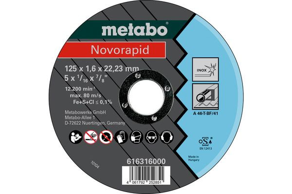 | Kurzbeschreibung | Novorapid 125 x 1,6 x 22,23 mm, Inox, Trennscheibe, gerade Ausführung (616316000) |