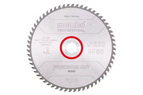 | Kurzbeschreibung | Sägeblatt "precision cut wood - professional", 250x2,8/1,8x30, Z60 WZ 15° (628049000) |