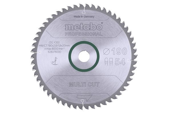 | Kurzbeschreibung | Sägeblatt "multi cut - professional", 190x2,6/1,8x20, Z54 FZ/TZ 5°neg. (628076000) |