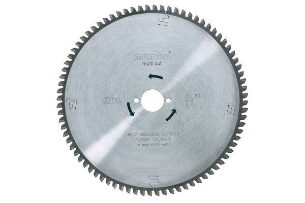 | Kurzbeschreibung | Sägeblatt "multi cut - professional", 250x2,8/2,0x30, Z80 FZ/TZ, 5° neg. (628088000) |