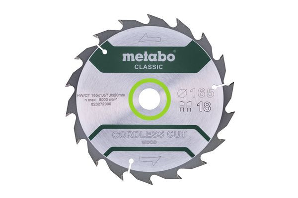 | Kurzbeschreibung | Sägeblatt "cordless cut wood - classic", 165x1,6/1,0x20 Z18 WZ 20° (628272000) |