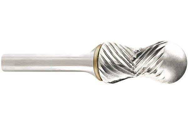Einzigartiger Radiusfräser mit spezieller Kurvenstruktur. Das speziell entwickelte Führungssystem verhindert ein Abrutschen vom Werkstück. Dadurch ideal geeignet für feine Radien auf scharfen Ecken/ Kanten und gute Kontrolle über scharfe Ecken. Durch die spezielle Nutengeometrie (überschneidende Standardverzahnung im Fräsermittelpunkt) erreicht man ein feines Fräsen auf allen Oberflächen und hohe Zerspanungsleistung bei hoher Standzeit. Die glatte Stirnseite hilft beim Führen des Fräsers und schützt vor Schäden auf der Oberfläche. Speziell entwickelt zum Herstellen von Radiusfasen bei harten Werkstoffen wie Stahl, Edelstahl, Gusseisen, Titan, Bronze, Kupfer, Messing usw.