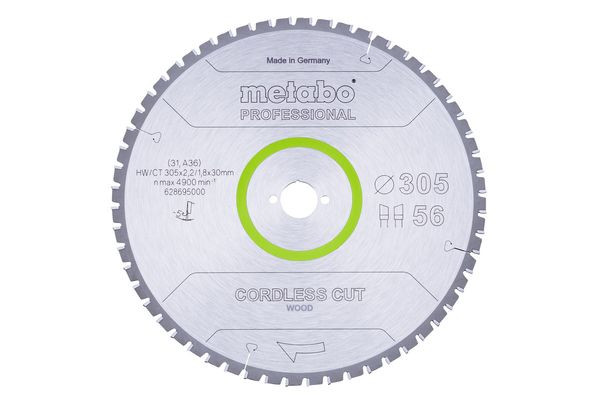 | Kurzbeschreibung | Sägeblatt "cordless cut wood - professional", 305x2,2/1,8x30 Z56 WZ 5°neg (628695000) |