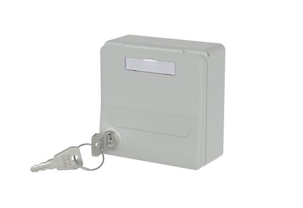 | Kurzbeschreibung | Modul-Unterputz-Gehäuse mit Klappdeckel und Schloss, grau, 2 Port unbestückt für Keystone |