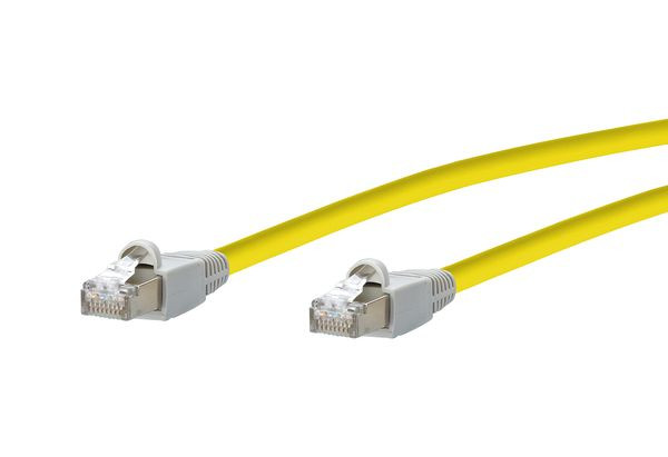 Vollgeschirmtes Cat.6 Patchkabel AWG 26/7 S/FTP mit PUR-Mantel, Beschaltung 1 - 1, Einhaltung der Klasse E nach ISO/IEC 11801, DIN EN 50173-1, Kabelfarbe gelb, Steckerfarbe grau, Kabelfarben können abweichen, bei Variante IP67 - IP67 folgende Längen verfügbar: 1, 2, 5, 10, 15 und 20 m, bei Variante IP67 - RJ45 folgende Längen verfügbar: 1, 2, 3, 5, 10, 15 und 20 m , bei Variante RJ45 - RJ45 folgende Längen verfügbar: 1, 2, 3, 5 und 7 m , weitere Längen erhältlich