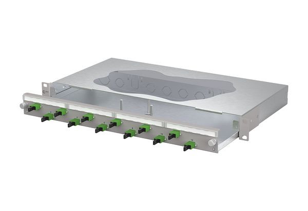19 Zoll, 1HE Patchfeld mit ausziehbarer Schublade, Bestückt mit 12xE2000-S Kupplungen, Versetzte Kupplungsanordnung für ein einfaches Handling, Werkzeugloser Metall-Bajonettverschluss zum Verriegeln der Schublade, Auszug zur besseren Montage abkippbar und komplett herausnehmbar (Auszugsstop), 30 mm tiefenverstellbar, Frontplatte mit Beschriftungsfeld, Frontplatte pulverbeschichtet in grau RAL 7035, Mehrere Kabeleingangsmöglichkeiten rückseitig: 6xM20; 2xM25; 2xVIK-Einbauausschnitte, Vorbereitet für den Einbau von vorkonfektionierten Leitungen