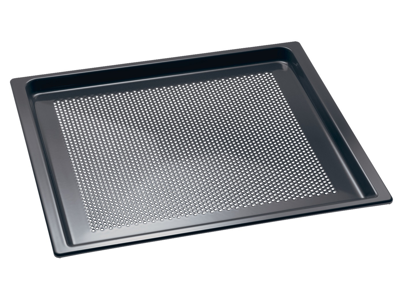Gourmet-Backblech gelocht HBBL 71 Für alle Herde und Backöfen der Generation H 6000 mit 76 l Garraum. Ideal zum Backen im Programm Klimagaren. Für perfekte Backresulate: knuspriges Gebäck, krosse Pizzen, Pommes frites u.v.a.m. Besonders leichte Reinigung trotz der feinen Lochung dank PerfectClean Veredelung. Kein Einfetten nötig.