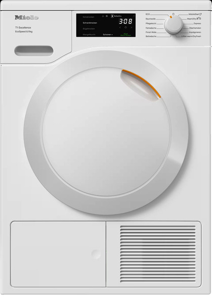 DirectSensor Display, Startvorwahl bis zu 24 Std., Restzeitanzeige, Anzeige "Behälter entleeren" und "Filter reinigen", PerfectDry-Trockensystem, EcoDry-Technologie, EcoSpeed, FragranceDos, AddLoad (Nachlegen nach Programmstart), Optionen: Knitterschutz, Schonen plus; Trockenprogramme: Baumwolle, ECO, Pflegeleicht, Feinwäsche, Oberhemden, Finish Wolle, Express, Imprägnieren, Bettwäsche, Lüften warm/DryFresh; LED-Trommelbeleuchtung, intelligente Trommelreversierung, PIN-Code Verriegelung, optische Schnittstelle, Miele@home, Wash2Dry (übernimmt das Programm der Waschmaschine), Türanschlag links, säulenfähig, ProfiEco Motor