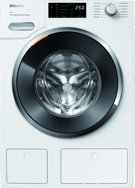 DirectSensor Display, Startvorwahl bis zu 24 Std., Programmablaufanzeige, Restzeitanzeige, Summer, AddLoad (Nachlegen nach Programmstart), PowerWash, TwinDos, CapDosing, SteamCare, Mengenautomatik, Schaumregulierung, Wassermengenzähler, Optionen: Kurz, Vorbügeln mit Dampf; Niedrigtemperaturwaschen "kalt" und "20°C", Waschprogramme: QuickPowerWash, Baumwolle, Baumwolle mit Vorwäsche, Pflegeleicht, Feinwäsche, Oberhemden, Wolle (Handwäsche), Express 20, Auffrischen (Dampf)Pumpen/Schleudern, ECO 40-60; AutoClean Einspülkasten, Watercontrol-System, Kindersicherung, PIN-Code Verriegelung, optische Schnittstelle, Miele@home, Tür Obsidianschwarz mit Chromring, ProfiEco Motor, säulenfähig